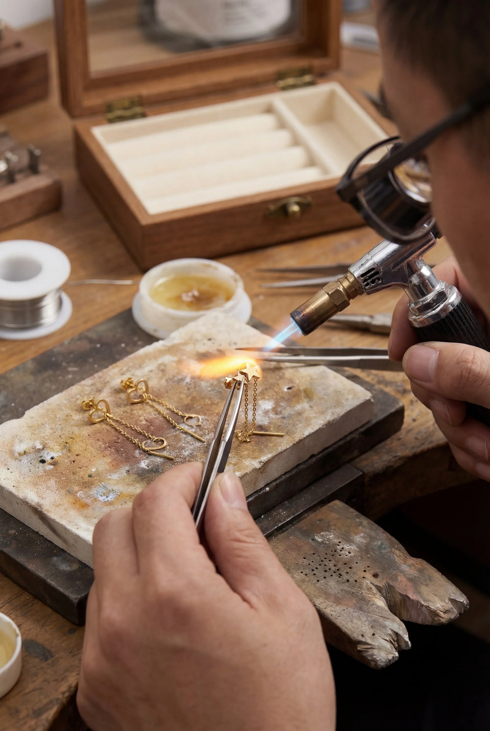 Fiecare bijuterie din atelierul nostru trece printr-un proces riguros de finisare manuală, unde atenția la detalii este prioritară, indiferent de complexitatea piesei. Bilele și figurinele din aur de 14K sunt lustruite profesional pentru a obține un luciu de oglindă, în timp ce brățările din piele și colierele sunt asamblate cu precizie pentru o durabilitate maximă. De la sudura fină a elementelor din aur până la selecția riguroasă a cristalelor, ne asigurăm că fiecare piesă reflectă lumina spectaculos, oferind acel aspect de bijuterie de lux creată să reziste în timp.
