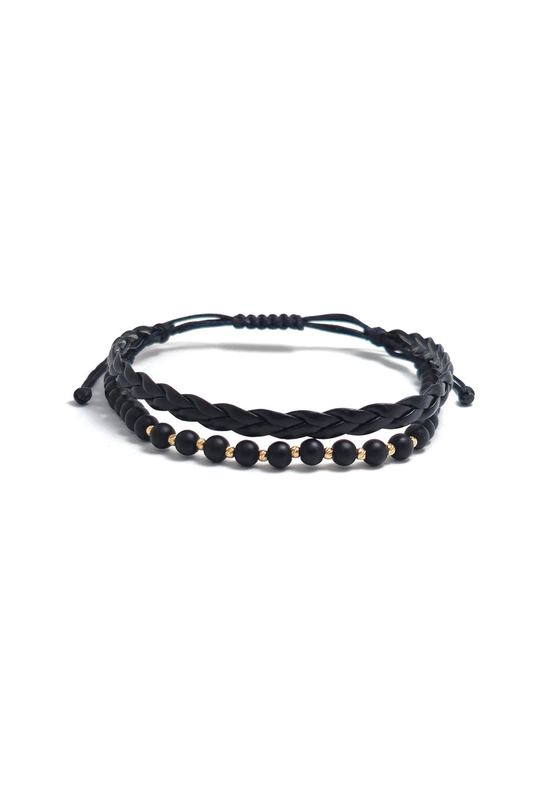 Brățara cu semiprețioase Onix Negru prezintă un model elegant, împletit și decorat cu 10 biluțe din aur 585 de 14 karate de 2 mm cu striații.